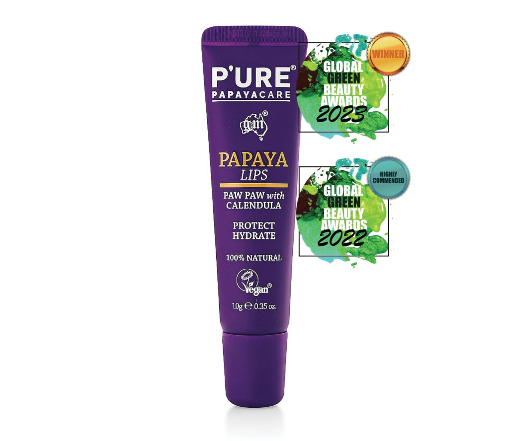 P’URE Papayacare Papaya Lips is 100% Natural & Vegan registered nourishing Lip Balm. Rich in Papaya & Calendula to protect & hydrate dry, cracked lips. Formulated without petroleum, parabens, sulphates, artificial colours & fragrances.
